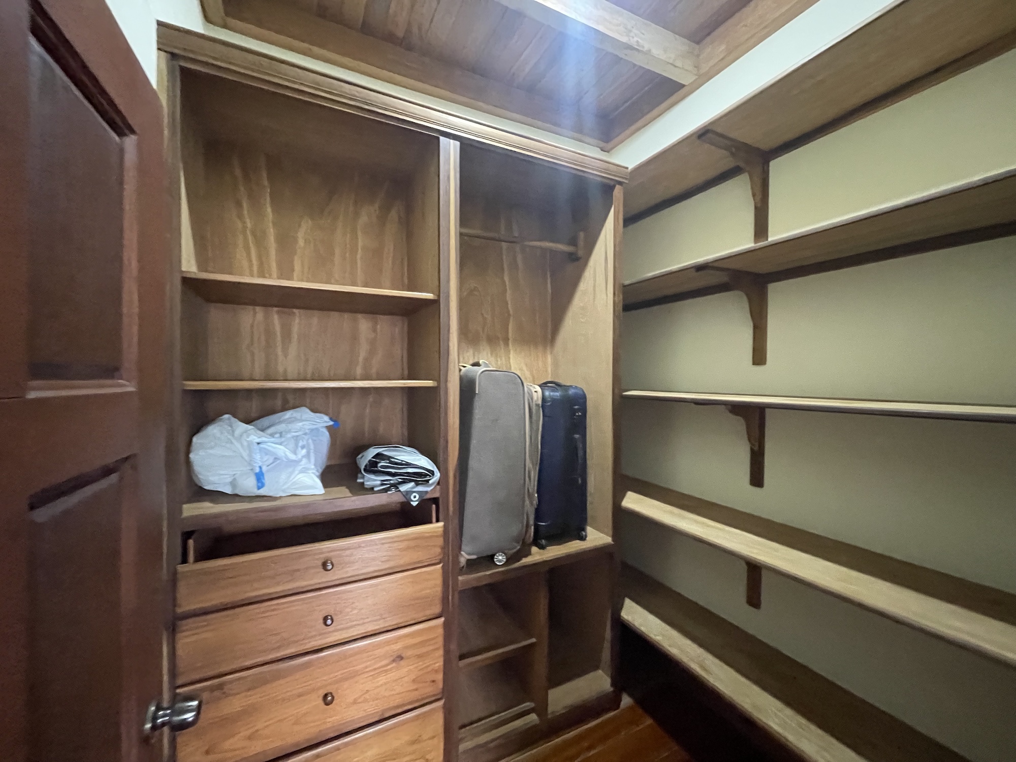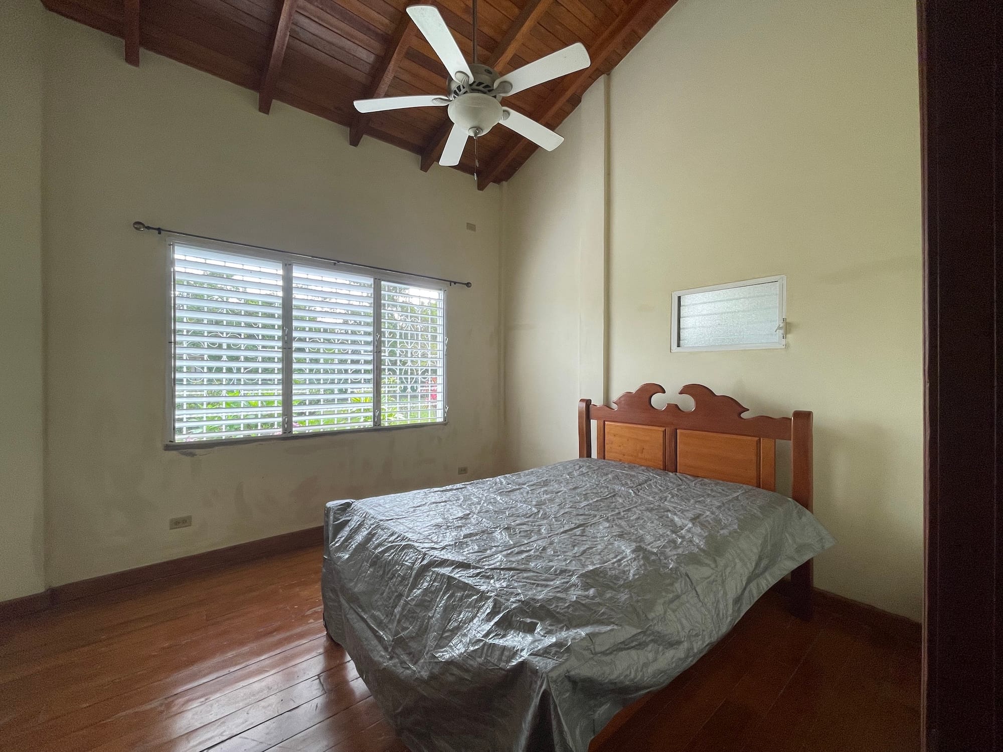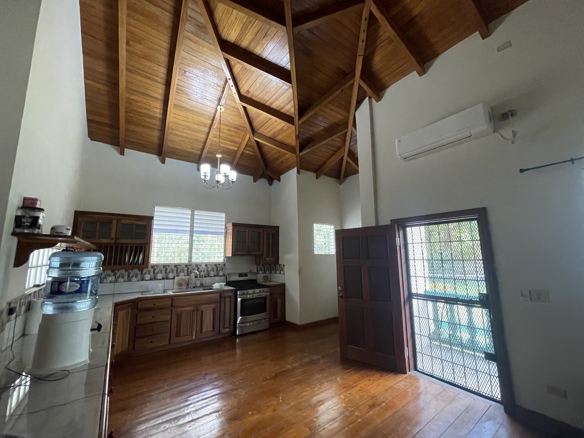 The main house, built in 2013, is both spacious and thoughtfully designed. It offers 4 bedrooms—one currently used as a laundry room, which could easily be converted into an office—along with 2 bathrooms. The master bathroom is especially functional, featuring two showers, including one adapted for wheelchair access. Inside, you’ll find a welcoming living room, a kitchen with beautiful Samwood cabinets, hardwood floors, and stunning wooden ceilings throughout the home that add warmth and character.