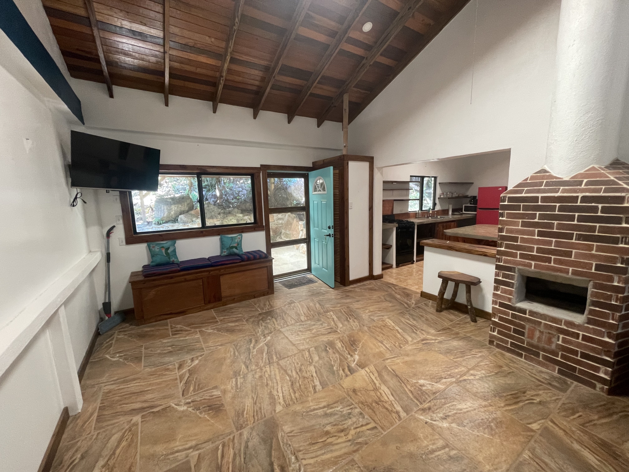 - Cozy indoor wood-burning fireplace.
