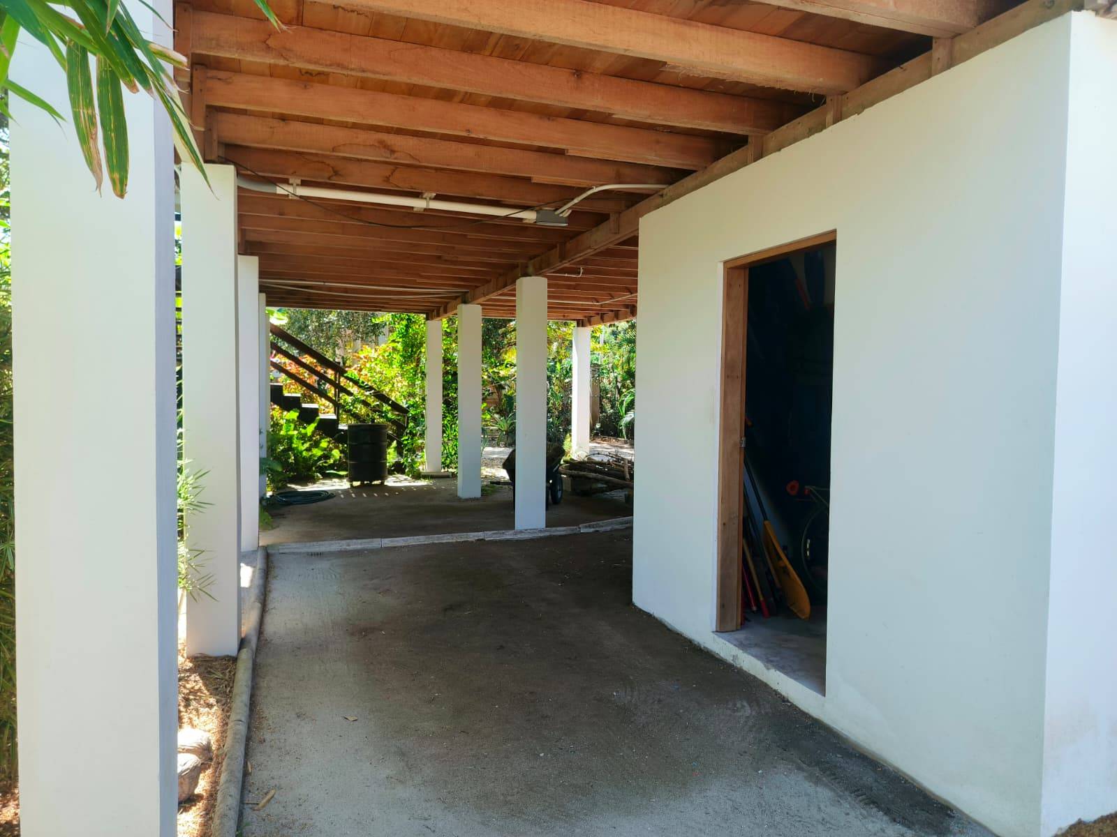 Solid concrete pillars life the home above the garden, creating a secure shaded parking area. A private storage room adds rare convenience for a home this size.