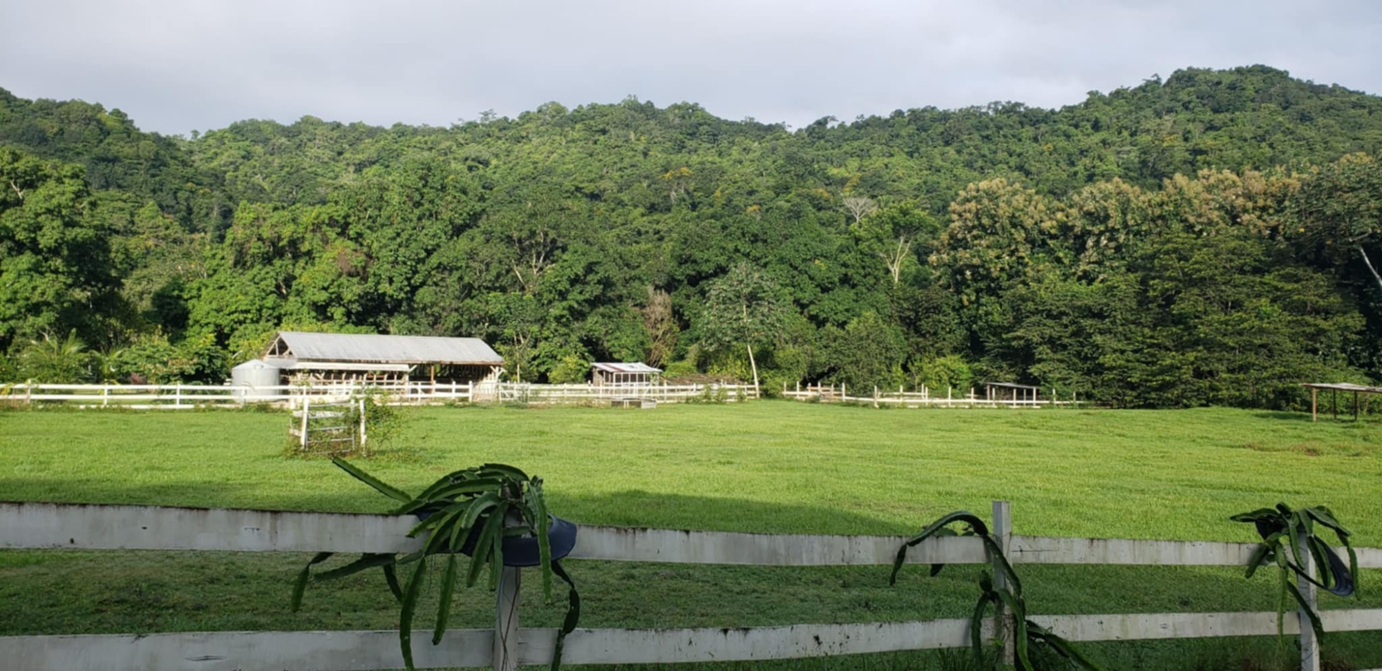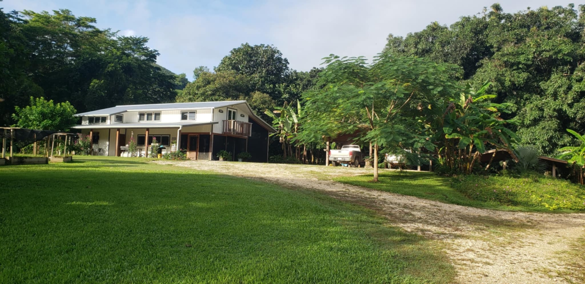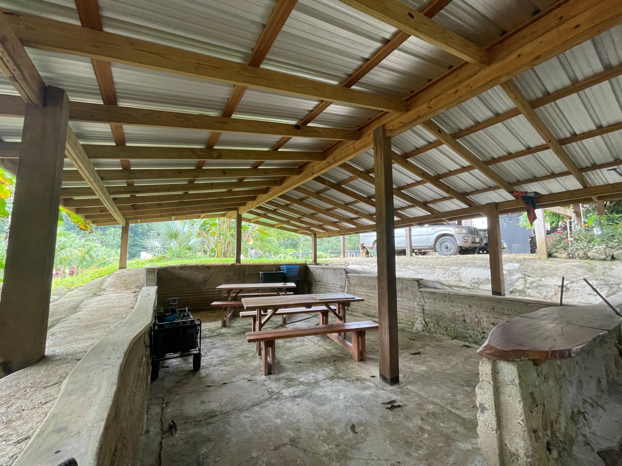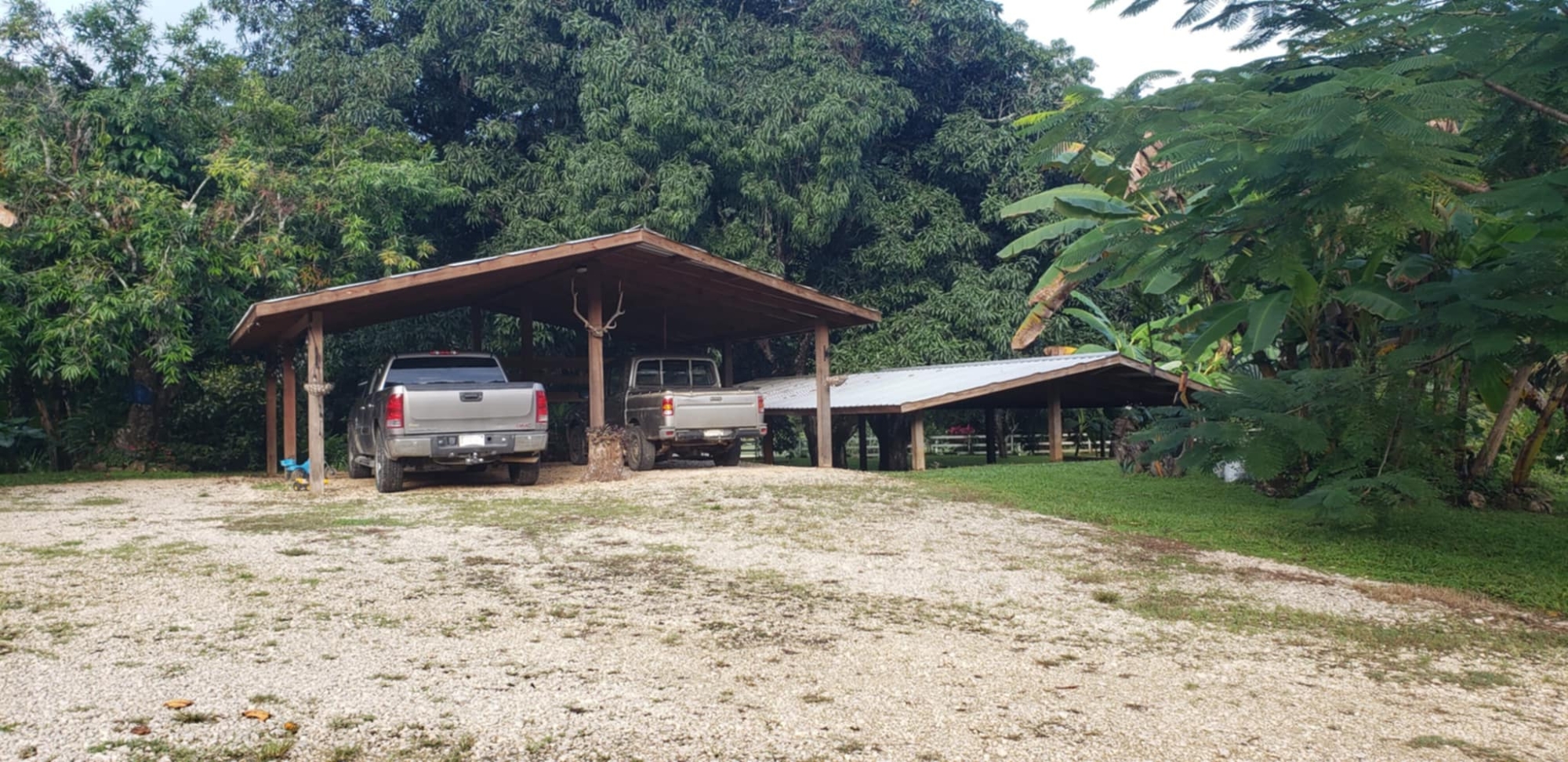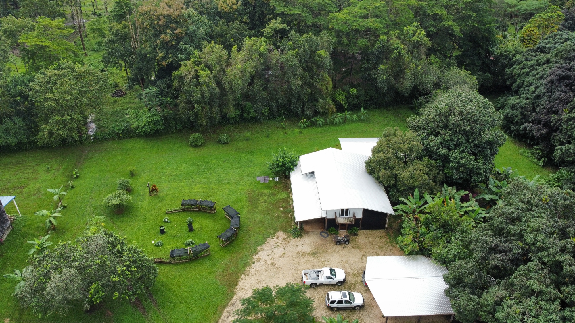 Agricultural potential is unlimited: mature fruit trees, 2–3-year-old orchard plantings, fenced pasture with water access, and three acres of cultivated garden beds thrive in Barton Creek’s fertile soils. Plus 60 acres of undeveloped mature jungle on the mountain.