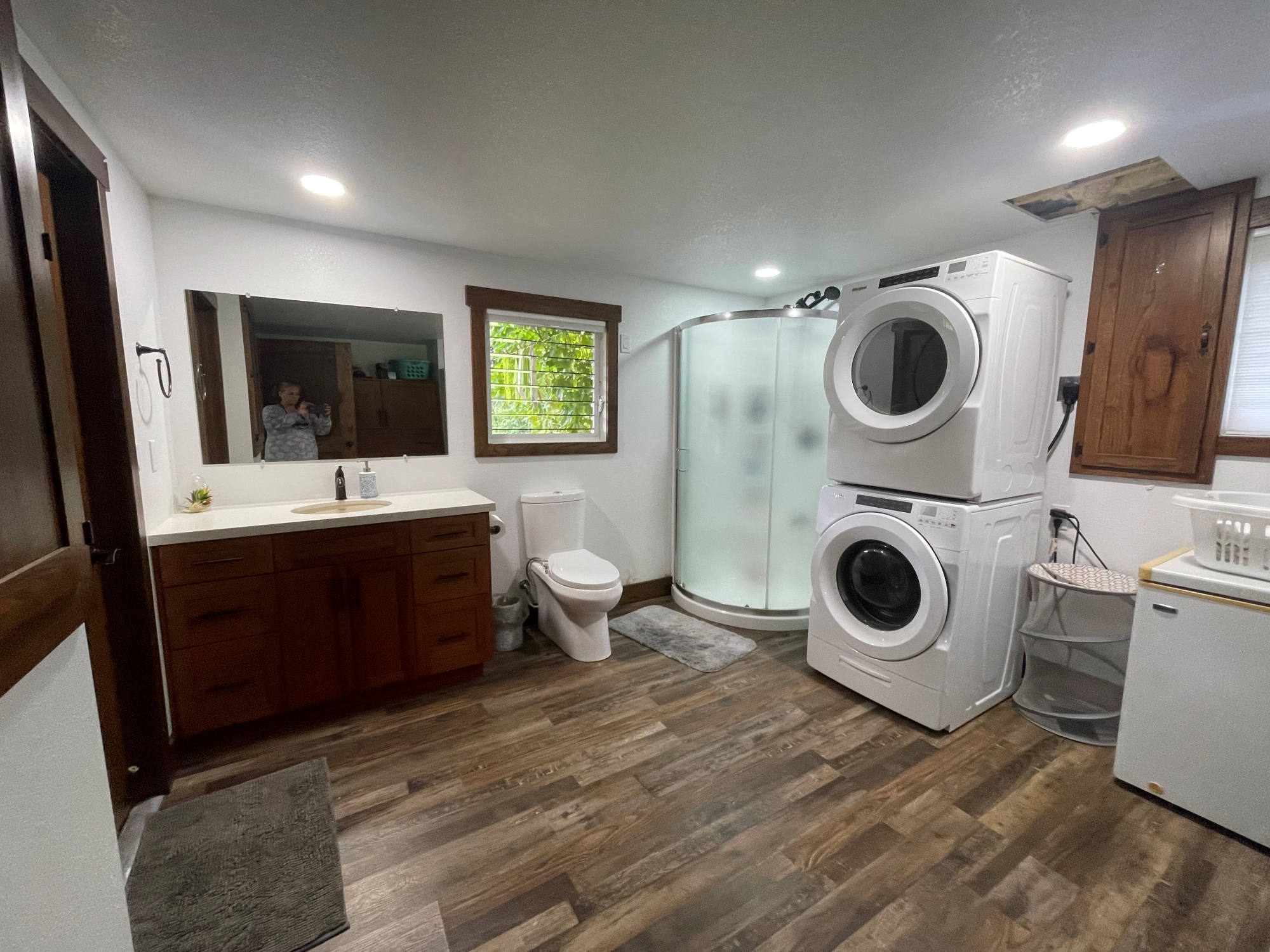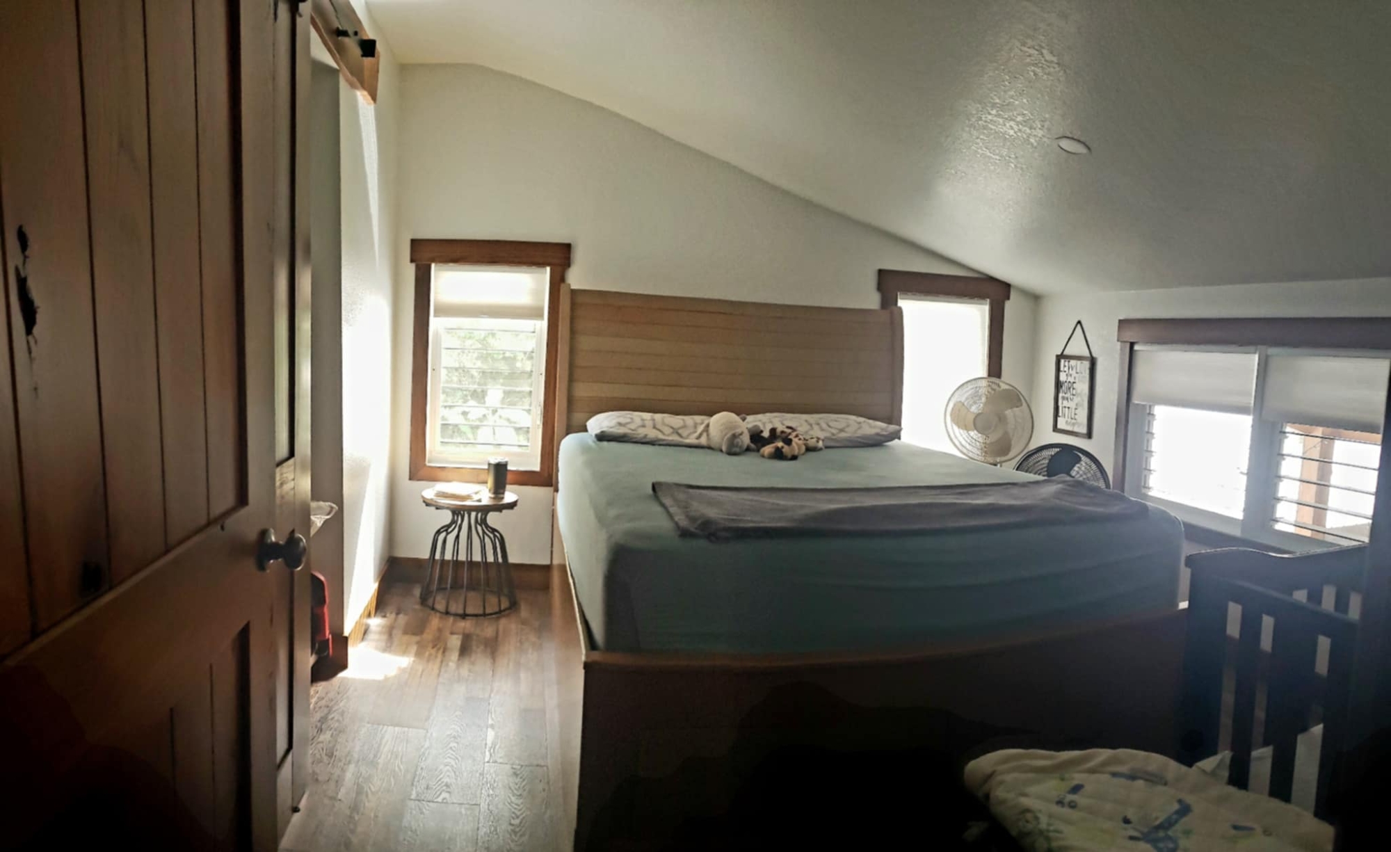 The main residence is a modern, 1,400 sq. ft metal-clad home designed for comfort and efficiency. Spray-foam insulation, vinyl plank flooring, quartz countertops, a walk-in pantry, and a screened-in living area create a bright, functional space for daily living. Professionally wired for 110V and 220V and fully plumbed, the home blends contemporary comforts with off-grid independence.