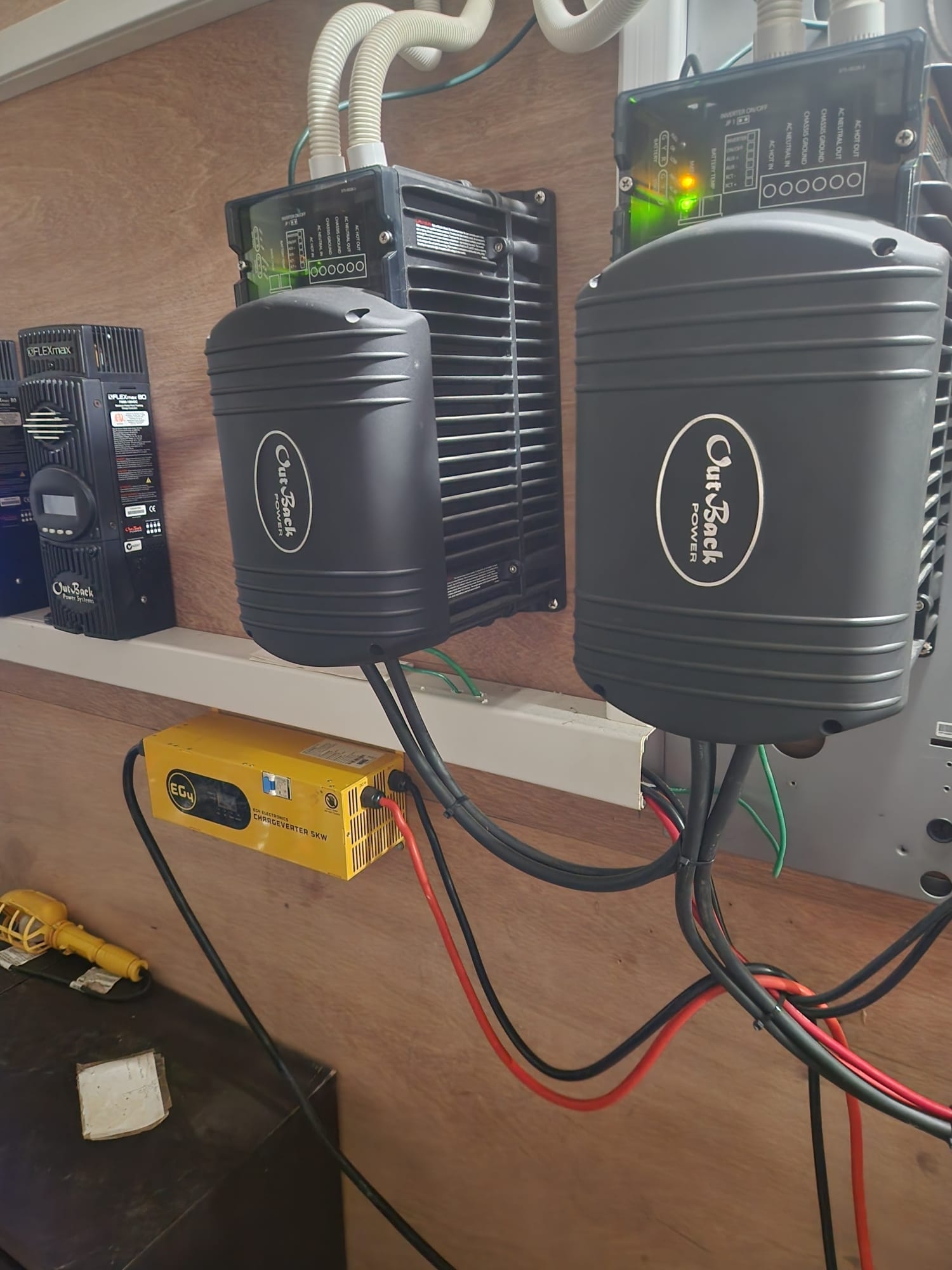 A professional-grade solar system with Outback inverters, 26 panels, and 10 lithium batteries powers the entire property. A 45ft drilled water well with a professionally installed 100 gallon pressure tank that supplies 11 water services at 50psi.